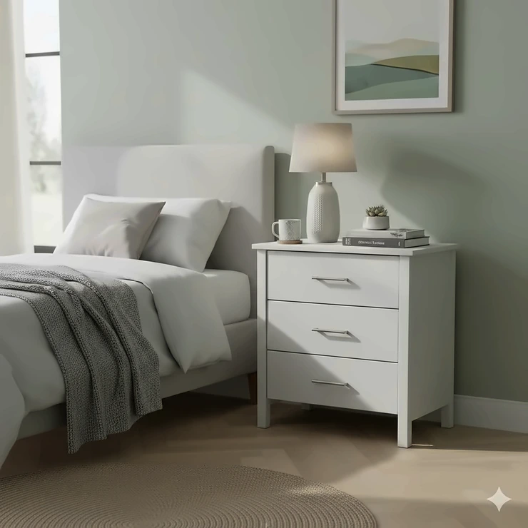 Traditional bedside tables offer limited storage—a small chest of drawers serves double duty. Choose models 50-65cm high for comfortable bedside use, ensuring sufficient surface area for lamps, phones, and books. This strategy eliminates needing separate bedside tables, saving space and money.